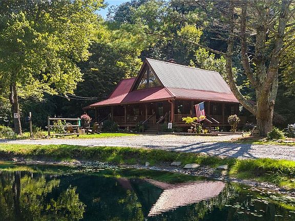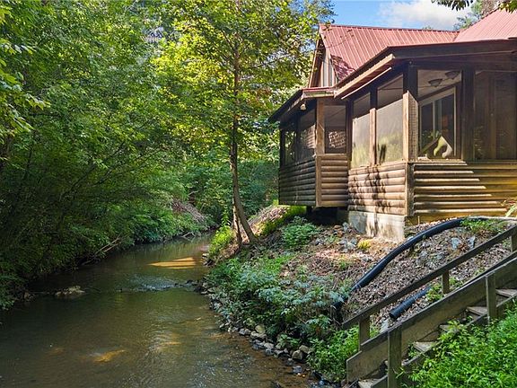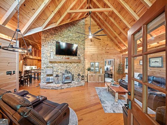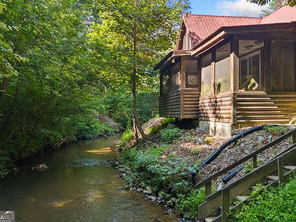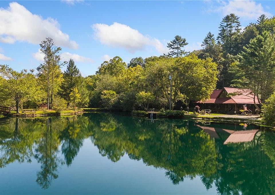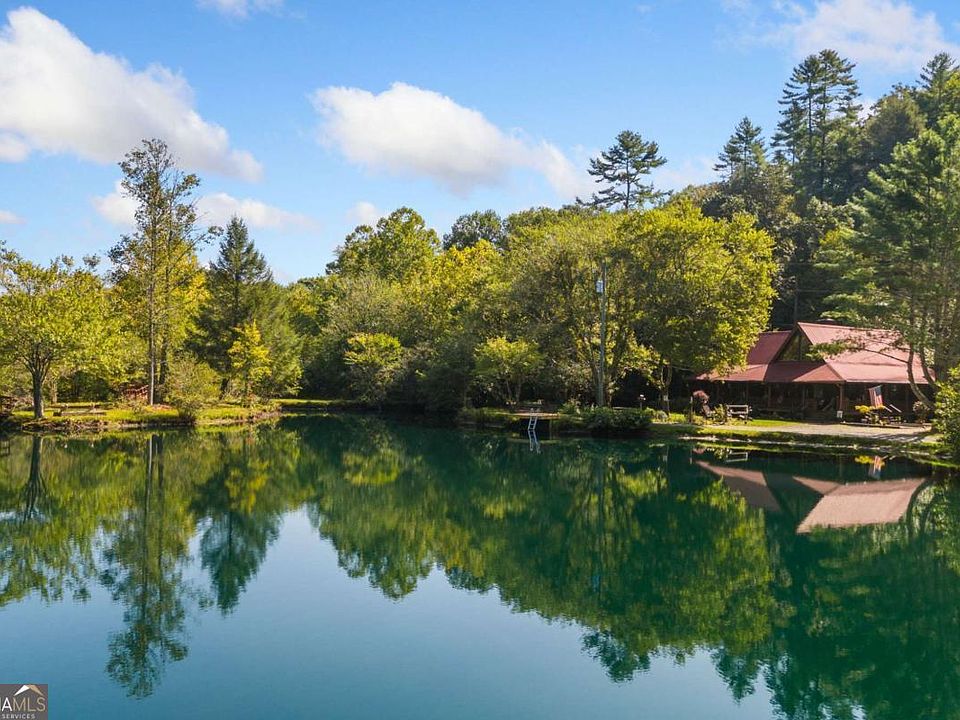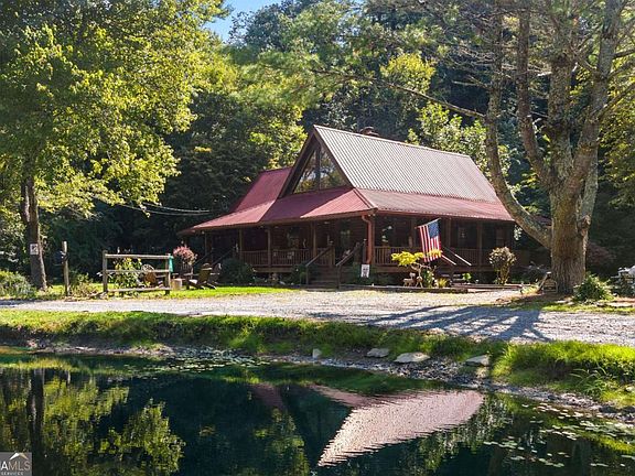 Welcome to your own slice of paradise nestled in the Cherry Log Mountain community! This unique property boasts 1.5 acres of tranquil beauty, situated along 300+ feet of Cherry Log Trout Creek, with its very own private lake, including a private dock. Step inside to discover this charming private cabin, offering a perfect blend of rustic charm and modern convenience. The highlight of this cabin is the massive primary bedroom flooded with natural light from numerous windows, creating a serene oasis for relaxation. Cozy up by the stack stone fireplaces on chilly evenings or step outside onto the back porch to unwind in the soothing hot tub. The open-concept living area provides a seamless flow between the kitchen, dining, and living spaces, ideal for entertaining guests or simply enjoying quality time with loved ones. The kitchen features stainless steel appliances, adding a touch of elegance to the rustic ambiance. Conveniently located just 10 minutes away from both Blue Ridge and Ellijay, this property offers the perfect balance of privacy and accessibility to amenities and attractions. Whether you're seeking a weekend getaway, a short-term rental business or a permanent residence, this property offers endless possibilities for creating cherished memories in the heart of nature. This properties will generate $100k+ annually with rental income, with a very high occupancy rate. The location is the best in all of Blue Ridge. Don't miss out on the opportunity to make this idyllic retreat or turn-key successful cabin rental business your own!