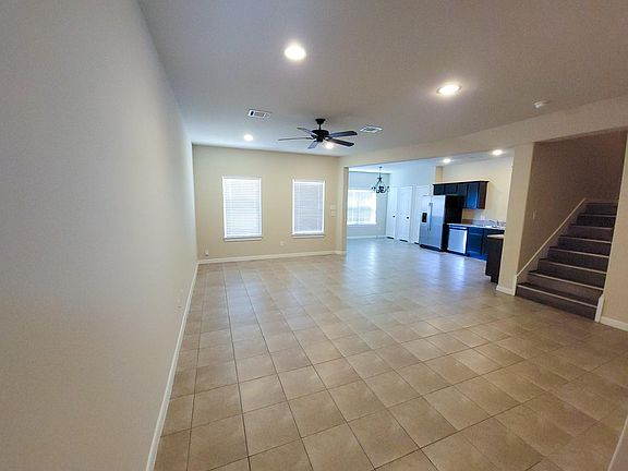 Available for immediate move-in, three spacious bedrooms, each with their own private bathroom and large closets. This home is one of the larger units. Guest half bath downstairs. Light and bright open living/kitchen/dining area, great for entertaining. Utility room with full size washer and dryer. Kitchen is very functional, refrigerator included. Fenced backyard with covered patio. Two car garage. Great home for students, only 1.5 miles to Sam Houston State University.