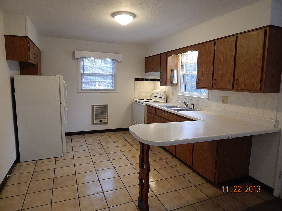 A 2 bedroom brick and vinyl with deck. All rooms are carpeted except kitchen and bath. The kitchen and bath have porcelain tile. There are 3 closets and one food pantry. The unit is heated by wall heaters and there is one window a/c. Owner pays for garbage pick up and water for one tenant. Tenant pays electric. This is a non-smoking apartment.