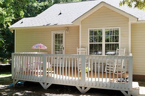 Brand New HVAC.Large Backyard JUST Cleared. Freshly stained deck! Motivated!!! Well-maintained ranch Vaulted ceiling in living room, marble surround gas log fireplace with TV nook. Large eat in kitchen w/ great natural light. Deck off kitchen overlooks wooded backyard. Large master suite. Master bath with garden tub, sep shower, DBL sinks, block glass window,large walk-in closet.