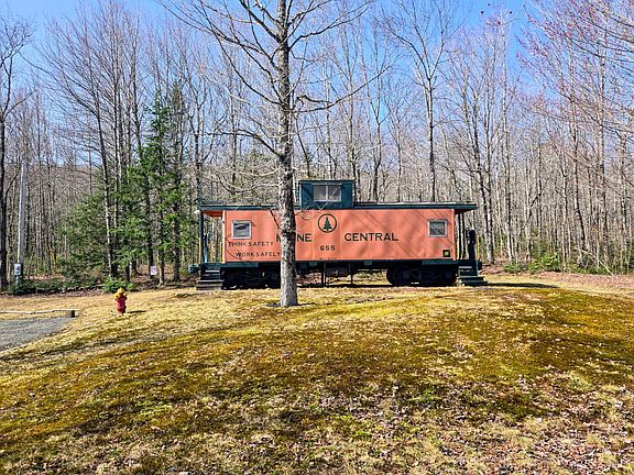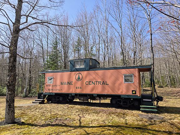 All aboard! MAINE CENTRAL RAILROAD CABOOSE 655... Here is a once in a lifetime opportunity to invest in a piece of Maine history, while owning your very own caboose with all the conveniences and amenities you need at camp! Retired from the rails and later relocated to it's new home on 1 acre in 2002, this caboose offers plenty of living space, sleeping quarters (sleeps 5), full kitchen, dining area, bathroom, shower, observation seats in 2 loft areas, 2 covered porches, large storage shed, plumbing, heating, well, septic and electricity. Fiber high-speed internet is also available at this location. An appealing property for history enthusiasts, investors or anyone looking to purchase a unique Maine camp. This property is an ideal rental opportunity as well, with an easy drive to the slopes of Saddleback and Sugarloaf, and nearby ATV and snowmobile trails. Sold fully furnished, with plenty of railway memorabilia and decor included! Surrounded by trees and mountains, enjoy the sound of the nearby babbling brook, or take a leisurely walk on the quiet dead-end road. Squeaky clean and meticulously maintained, this caboose camp is a must-see. Get your bids in for a chance at a one-way ticket to the Western Mountains of Maine!