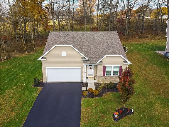 Tucked away on a private cul-de-sac with its own wooded homesite, this beautiful four-year-old ranch home offers privacy, comfort, and modern design. LVT flooring flows throughout the main living areas, leading to a stunning kitchen with custom cabinetry, granite countertops, tile backsplash, and an oversized island open to the dining area and family room. The dining area opens to a large composite deck that steps down to a concrete patio surrounded by professional landscaping. The primary suite features a walk-in closet and bath with double vanity and custom-tiled shower. A versatile front room with French doors can serve as a den or guest bedroom. The expansive unfinished basement with plumbing for a full bath offers endless potential. Conveniently located to the charming towns of Evans City, Zelienople, and Harmony. Also easy access to all major roadways and interstates making travel to Butler and Pittsburgh easy and convenient. Gas hook ups for stove and dryer available.