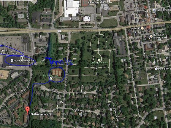 Location! Location! Location!- Beautiful Waterford Village Condo in the heart of Dublin with walking paths to downtown Dublin, shopping & quaint stores (Kroger, Jason's Deli, etc.). Walk to Old Dublin Town town and cross over bridge to Bridge Park for great dining options in Bridge Park District. Three minutes drive to 270! This property is also opposite Dublin business hub - Metro Place. End unit with 3 finished levels of living space with private patio, one car attached garage and one reserved parking space. Beautifully maintained inside & out. You will appreciate the extra sunshine, windows and privacy this end condo offers. You will love entertaining family and friends in the large great room with fireplace & adjoining dining room. The recently updated kitchen and dinette overlooks the beautifully landscaped patio and attached garage. The master bedroom suite has vaulted ceilings & a huge walk in closet with a Jack & Jill bathroom. Large finished lower level can be used as a rec room, office or a third bedroom. Condo backs up to a wooded area. 17'x11' patio with privacy fence overlooking large trees extends entertaining space. Schools are Indian Run Elementary School (school rating 8), John Sells Middle School (school rating 9) and Dublin Coffman High School (school rating 9).