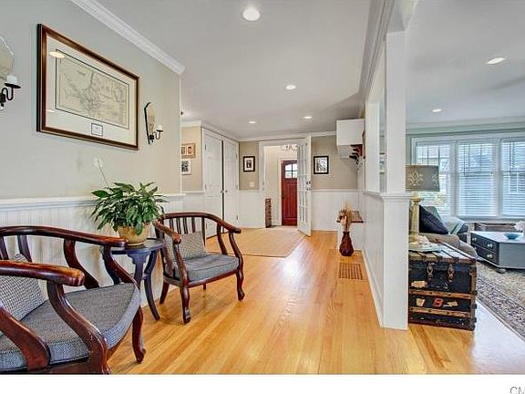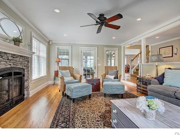 Walk to everything from this completely remodeled and expanded custom Colonial on sought after street w/oversized, landscaped backyard! Master BR Suite w/vaulted ceilings, walk-in closet and spacious Bath w/tub. 2 additional BRs w/Full Bath and plans available to easily add 4th BR. Foyer w/raised paneling and great storage, Office w/French Doors, Family Room w/built-ins and gas Fireplace, Kitchen w/granite counters, large island and stainless appliances and Dining area w/windows overlooking backyard. A nautical 4-season Porch w/vaulted ceilings, Pella sliding windows, ceiling fan and custom details adds 340 sq ft plus 240 sq feet in finished LL! Addt'l features include zoned heat and A/C, irrigation system and fire pit w/patio!