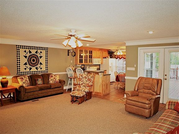 Your friends and family will enjoy the cook-outs, their morning cup of coffee or a sunset dinner on the spacious lake side deck. Fish from the boathouse deck, or just grab a cold drink and relax in the water on a float. The view is wide and the water is deep! The lake-side yard is ideal for playing volley ball, tossing a football or just swinging in the cool of the day. And if the family wants to bring some of their water toys; there is a boat ramp. The inside of the home has that cozy "lake house" feel. The great room (which has a stone, wood-burning fireplace), and the kitchen with eat-in dining area are large and open. There is a counter bar with bar stools which is great for those on-the go lunches before heading out for a boat ride or water skiing. This is lake living at it's best!