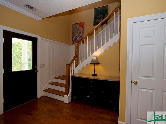 Inspired by Victorian Architecture this remarkable home also has a Carriage House and is located on a large lot with beautiful hardwood view. The main house has a wrap around porch on the front and a large deck on the back. The interior is well appointed with Hardwood Flooring, Corian Counters, Marble, and Tile. In addition to the separate living and dining room the downstairs boast a very large kitchen with loads of cabinets, butlers pantry, and Master Suite. Upstairs there are 3 guest rooms with 2 full baths. The Carriage House includes covered parking, a movie theater with bar downstairs, and upstairs an In-Law Suite with plenty of space to add a kitchenette. If your looking for the home that has it all and is affordable you have found it. The Village of Wild Heron is a wonderful community with flowering trees lining the street and includes a pool. One if not the finest of Southside Savannah living.