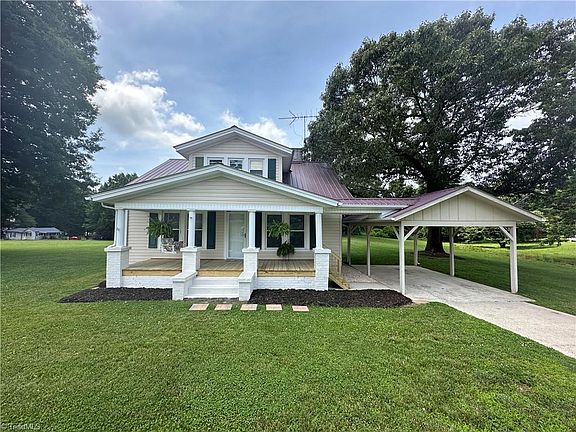 Home in Taylorsville, NC nestled on 0.94 Acres. New counter tops, new floors, new vanities, new paint, new water heater, and has an out building in the back. Washer and dryer in the out building, swing with pillows on front porch, and hanging plants on front porch convey. New light fixtures throughout home and more!! Bonus nonheated space upstairs, ~330 sq ft, upstairs ceilings are less than 7ft. 2018 Septic is for 2 bedroom, see attachments for septic permit.
