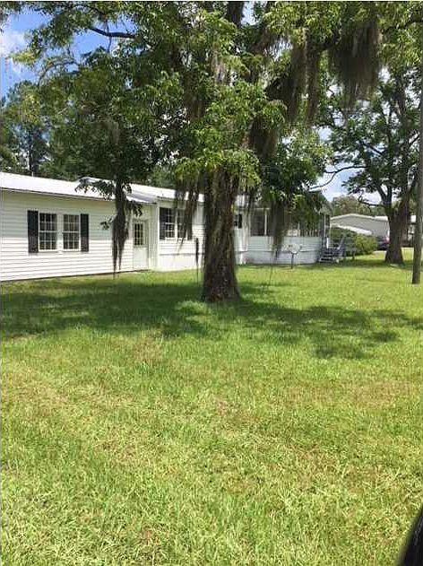 This home is MOVE IN READY condition! Very spacious kitchen includes laundry closet and some built-ins in the eating area. Two full-baths and 3 bedrooms. Master bedroom and master bath are on one side of home and the other 2 bedrooms are on the other. Large living area with dining area is in the center of the home. Professionally constructed 2-car garage with automatic garage opener on concrete slab with hot water heater, work benches, washer & dryer hook-ups and storage cabinets. Spacious workshop in separate shed which has electricity, work benches and storage. Large front and back screened-in porches provide additional living & entertainment opportunities. Well maintained yard with blueberry bushes and mature tree which offers shade. Some skirting on the home will be replaced by owner. No Known storm damage.