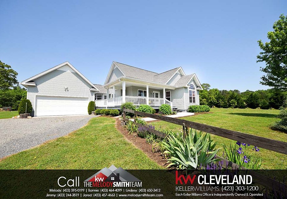 INCREDIBLE FARMHOUSE WITH 8.8 ACRES! This GORGEOUS 3 Bd, 2 Ba Home is located near the Hiwassee River! The expansive covered rocking chair front porch is the perfect place to sip lemonade and enjoy the beautiful view. The front door leads to a light and bright living room with vaulted ceilings, hardwoods, and built-ins surrounding a gas fireplace. The living area leads to the kitchen/dining combo. Contemporary white cabinets & stainless appliances adorn the kitchen. Gas stove has a vent overhead, microwave is built-in, and separate oven round out the kitchen. Master suite features vaulted ceiling, french doors that lead to the back deck, walk-in closet, and STUNNING double vanity with tub/shower combo in the en-suite. Two additional bedrooms and additional bath finish off the living areas. Double car attached garage with HVAC and a 24 x 44 detached 2 car garage featuring a fully finished office/spare bedroom with HVAC. Property also includes pastures, fencing, barn with stables, outbuilding, and a run in shed. There is electricity in the barn and outbuilding. Gorgeous landscaping, privacy, and fruit trees adorn the property. DISH Internet/TV. This home offers amazing mountain views and is located minutes from the Hiwassee River! Call today before this treasure is gone!