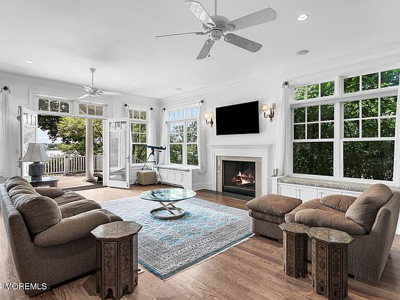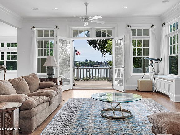 Navesink Riverfront Nantucket Style Colonial w/ 150' Ipe dock artfully designed by Anderson & Campanella is a true masterpiece! This well-thought-out home features high ceilings & an abundance of windows, flooding the space with natural light & offering stunning views of the Navesink River. The brilliant open floor plan includes a gourmet kitchen that opens to a great room w/ oversized windows & transoms throughout. Custom built-ins & high end millwork, hardwood flooring & great versatility throughout. Enjoy beautiful baths, a luxurious primary w/ oversized WIC, a walk-out finished lower level w/ covered porch & more! 16,000lb electric lift & bubbler system @ dock. A must see to truly appreciate an endless list of amenities. Minutes from the NY Ferry and train. Zip 07701.