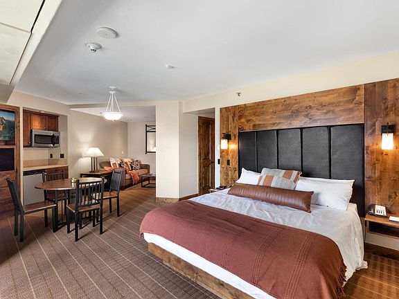 A rare offering of a Junior Suite, Peaks Resort and Spa condo unit #418 is a southwest facing, 4th floor, oversized studio. The condo features one King bed, a separate alcove with a pull-out sofa sleeper, mini bar with microwave, dining table, renovated bathroom, and a unique oversized covered outdoor balcony. The Peaks offers entry-level ownership into Telluride's market with a multi-million dollar Mountain Village location, mountain views and luxury amenities. This condo overlooks the golf course and ski area with views to Mt. Wilson, western sunsets and the ski runs! The Peaks is Telluride's premiere full-service resort with seamless ski-in/ski-out location; ski valet service in the winter and golf-in/golf-out access to the Telluride Golf Club in the summer and membership to CO's largest spa facility. In-house rental and unit management agreements with the resort are available. This condo as a larger Junior suite garners more rental income than a standard studio unit based on a larger square footage.