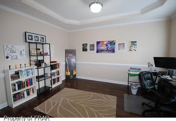 -Gigantic house with tons of room! French doors lead into large office w/ hardwood floors, formal dining room, large kitchen with tons of cabinets, great floor to ceiling pantry cabinets, stainless appliances, huge living room w/ gas log fireplace, sunroom w/pool/ping pong table! Oversized privacy-fenced backyard! Upstairs boasts great sized bedrooms and awesome bonus room w/ study/computer room off of it!Plantation blinds. Walk-in closets, nice laundry room! Minutes to Lillington & Bragg!