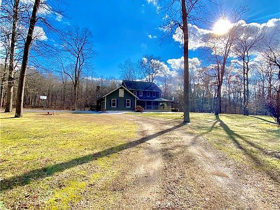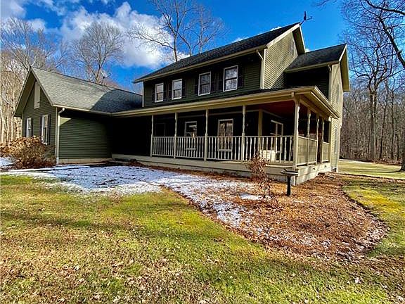 Preserved unspoiled privacy & serenity on almost 11 acres including an additional build lot of perfectly sited level topography set back off the cul-de-sac with your very own illuminating pond, babbling brook & old stone walls once used for farming. This Inspiring custom Colonial Farmhouse design was well planned with an oversized wrap around porch with pretty redwood decking overlooking a natural setting, custom feildstone sidewalks & granite steps. Open floor plan with great room showcasing cathedral ceilings, wood beams, skylights & a stunning rustic custom floor to ceiling stone fireplace. The Great room is to the back of the home open to the eat in kitchen. A den to the back right side of the kitchen & the spacious stunning formal dining room is to the front of the home. The light and bright master suite is upstairs to the back right side of the home, another bedroom to the left side & 2 bedrooms located to the front of the home. A convenient walk-up attic access is located through the first bedrm to the right front. Oversized mud room with laundry & utility sink located on the first-floor side entrance. An add. laundry closet located in the partly finished walk out basement. Beautiful hardwood flooring through most of the home. Updated central air unit, hot water heater, furnace is 7 years old & the roof is 7 years old! The 2.31-acre lot is approved & can be used to build a house or barn. A 2nd approved lot to the left of the property avail. to purchase separatley.