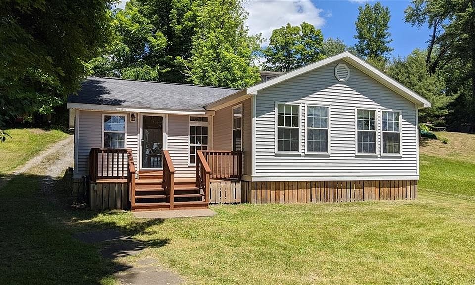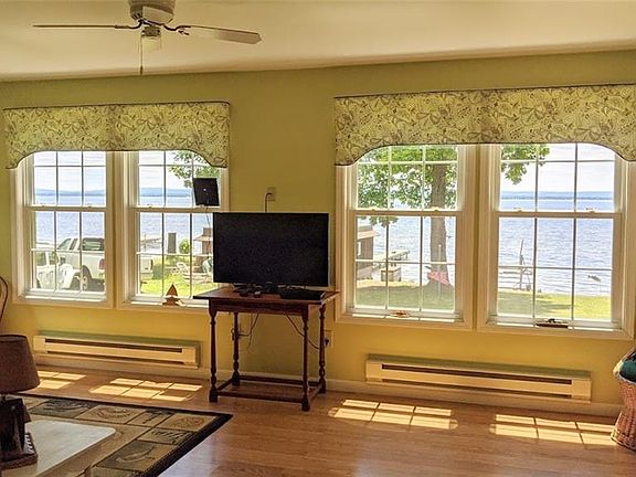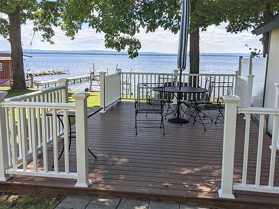 Sitting way back off the road you will find your ranch home with 50 feet of North Shore Oneida Lake dream waterfront! Deeper water, very slight descent into the water from the home and the beautiful view you have always wanted. This is the prime fishing spot, close to an acre of land and many Eagles, Osprey and other birds reside here. 3 bedrooms 2 full bath home that was constructed by a structural engineer and built to last in 2006 with 1340 square feet and the perfect layout where you can see the lake from almost every window! This home has been used as a camp and just needs insulation underneath to make it year round. Very well insulated through-out the walls and ceilings, Trex deck overlooking the lake, great yard for gatherings, plenty of parking and a two story 24x20 garage that has enough room upstairs to make it a bunk house or for plenty of storage! This home was built in 2006 but many of the mechanicals and cosmetics are 2012 when the home was finished.