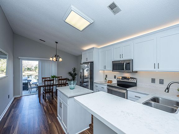 Welcome to this stylishly updated 3 BR, 2 BA single story home with peaceful pond views in Shadowmoss! Not a single step or stair! Owner did a full kitchen renovation with all new cabinetry, quartz countertops, a center island, stainless steel appliances, and under & over cabinet lighting. Other updates & upgrades include Trane 15 SEER heat pump, architectural shingles on roof, new gutters, new sliding glass door on order, new garage door, new luxury vinyl plank flooring throughout living areas and newer hot water heater! Enjoy the best of open floor plan living with a seamless transition from your spacious living room to the eat-in kitchen, all while enjoying the tranquil views of the pond from your dining table. Laundry area is in the hall adjacent to the one car garage entry.Neighborhood includes award winning golf course, pool and club house with membership options. Plenty of walking trails, bike lanes. There is a food truck rodeo several times a year at clubhouse. Conveniently located just off I-526. Plenty of walking trails, bike lanes. Walk to Drayton Elementary School. Minutes drive to Stores and hospitals. 10 min drive to Airport, Historic Summerville, 20 min to Mt Pleasant, Downtown Charleston. 30 min to the Beaches. Flood insurance is not required.