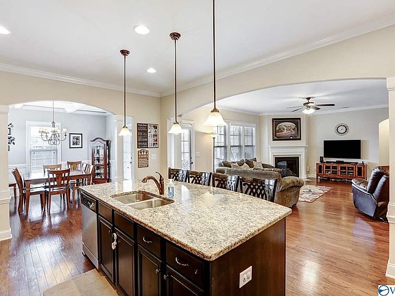Lovely open floorplan with 5 bedrooms or 4 bedrooms with a Bonus. Home features 2 bedrooms on the mail level, crown molding, arched entry ways, recessed lighting, granite counter-tops, oversized island, stainless steel appliances, and tile backsplash. Living room is open to the kitchen and has cozy gas log fireplace with an abundance of natural light! Main level master with trey ceiling and glamour bath! Formal dining room features wainscoting and coffered ceiling! Oversized bedrooms with large closets! Loads of additional storage.
