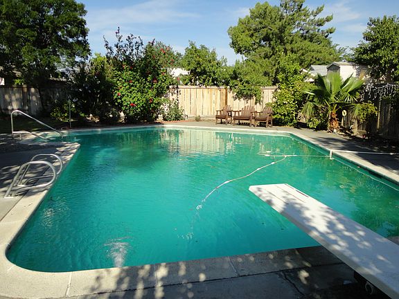 Beautiful house with attached garage and large backyard with swimming pool.