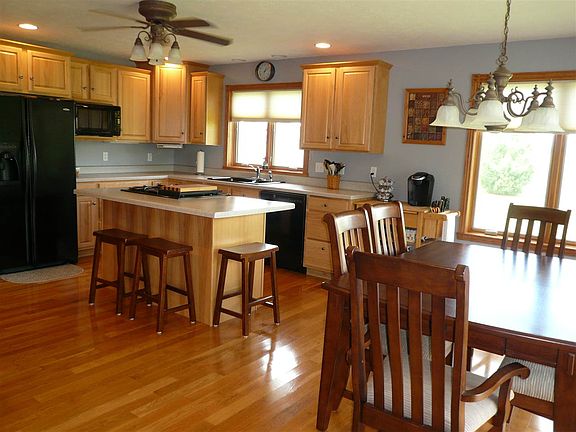 BYRON SCHOOLS! AMAZING VIEWS from this beautiful custom home with wrap around porch positioned on 5 acres with all the extras inside & out. 4 bedrooms, 3 baths, 3.5 car garage. Open kitchen with center island, dining area with access to deck and family room with fireplace. Office with French doors. The 4 season room also features separate deck with hot tub and access to MBR. Full finished walk-out LL rec room and wood burning stove, bath, workshop with heat and air purifier. RV parking with 50 amp pedestal.