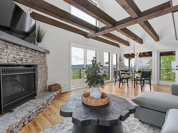 Jaw-Dropping Mountain Views! This fully modernized 2-bedroom, 2.5-bath home in Enchanting Forest is the ultimate mountain retreat, perched at nearly 2,700 feet with walls of glass framing panoramic, long-range views. Completely updated with a new kitchen, luxury bathrooms, and a redesigned loft, this property also features a new AC unit, metal roof, and a high-end hot tub for ultimate relaxation. The open floor plan includes a wood-burning fireplace, exposed beams, and high ceilings, perfect for entertaining. The terrace level offers a private suite and gaming room, providing a perfect escape. Minutes from Lake Blue Ridge, the Toccoa River and the Aska Adventure Area, this is a rare opportunity to own a luxury, income-generating mountain property with unparalleled views. Investors, take note: This turnkey property is a short-term rental powerhouse, grossing over $10K in just 60 days, and it is just ramping up.