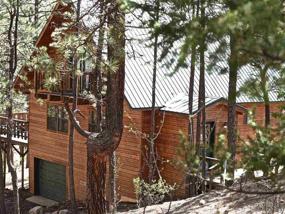Across the road from access to Headin' Home ski run. Just minutes from the Angel Fire Resort Lodge and the Chili Express Hi-Speed Quad Chairlift. A real cabin, just remodeled. New tile, granite, stylish cabinets and S/S appliances, bar, and recessed lighting in kitchen. Pantry. Both bathrooms remodeled with new tile, double sinks, new cabinetry, lighting fixtures, counters, new tub/showers, toilets. New tile in mud room. Driveway has been widened and filled with new gravel. Laundry room remodeled. Freshly painted. Borders greenbelt, leading to hiking trails. Views from greenbelt. If you are new to Angel Fire, the following might be helpful to know: This property is in Angel Fire Resort. A Resort Base Membership required - $1265/yr. Resort amenities include ski mountain, $15 mill Angel Fire Resort Country Club with top chef, PGA-rated golf course, nationally-acclaimed mountain bike park, tennis courts, trout-stocked Monte Verde Lake, hiking trails, etc. Jet-capable Colfax County Airport close-by for your private plane. Approx. 40 min to Taos, 2 hours to Santa Fe and 3 hours to Albuquerque. Exceptional climate. When it's 100 in TX, it's in the 70's in Angel Fire. Second generation fiber optics in ground, ready to be hooked up to main station summer of 2015. Important to those needing to telecommunicate with large data transfer and streaming needs.