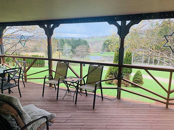 Out of town far enough for country living yet close enough for convenience. Here's a beautiful 3 bdrm. ranch home nestled on 5 acres with a picturesque view. This home is full of charm with high end finishes like custom kitchen cabinets, granite countertops, and a unique staircase. Relax or entertain in the full finished basement that offers a large family room, a back den that would be perfect as a 4th bedroom, and a full bathroom The covered front porch is large enough for dinner gatherings and yet peaceful enough for morning coffee. The detached 2 car garage has a large workshop set up for wood working. Come enjoy the view of the "Endless Mountains" and the peaceful sounds of nature.