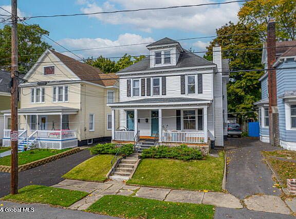 Discover this beautifully maintained 2-family duplex, perfect for owner-occupants seeking rental income. The downstairs unit, currently owner-occupied, boasts a spacious layout with a wood-burning fireplace, large bedroom with ample closet space, gleaming hardwood floors, and custom cabinets and bookshelves in the living room. The upstairs 2-bedroom apartment, generating $1,200/month in rent, features hardwood floors and a functional layout.