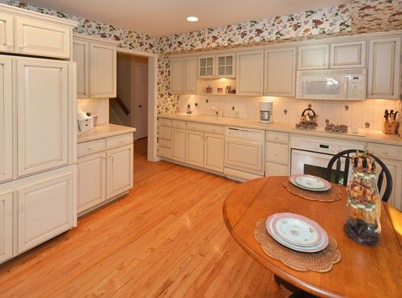 Gorgeous spacious updated rental at desirable Brookside Manor--end unit with wooded views close to clubhouse, pool and tennis courts. Sparkling hardwood floors, updated kit and baths and much more! Great rental...amazing location and complex...clean and updated...brand new energy effic.furnace and central air being installed in early Dec. Kitchen wallpaper to be replaced, new powder room...freshly painted...huge master suite, WIC and newer bath! First floor includes a family room with custom built-ins. Unit was the original model so includes built-ins, wet bar, open floor plan, gas fireplace, oversized deck and full basement w/pantry and finished storage room! Tenant pays all utilities, tenant insurance, no pets, no smoking, rental application, interview,1st $150 repairs and NTN credit report required,1.5 mo.sec