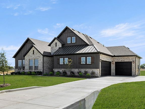 MLS# 20969319 - Built by Sandlin Homes - Ready Now! ~ Discover the Westwood plan – a beautifully crafted home offering 3 bedrooms, 2.5 bathrooms, a private study, bay windows in the primary bedroom and stunning architectural details including a barrel ceiling that flows directly into a beam-accented great room. Perfect for both entertaining and everyday living, the home also features an outdoor grill for seamless indoor – outdoor living. The gourmet kitchen is thoughtfully appointed with satin brass plumbing fixtures, a convenient pot filler, dark cabinetry for rich contrast, quartz countertops, and a trio of elegant pendants over the island. The design blends natural textures with a deeper, more refined color palette creating a warm yet sophisticated atmosphere. Luxury finishes include veined black tile, patterned penny mosaics, and statement utility tile, all tied together by a striking fireplace surround that serves as the centerpiece of the living space. This home effortlessly combines elegance with comfort in every detail.