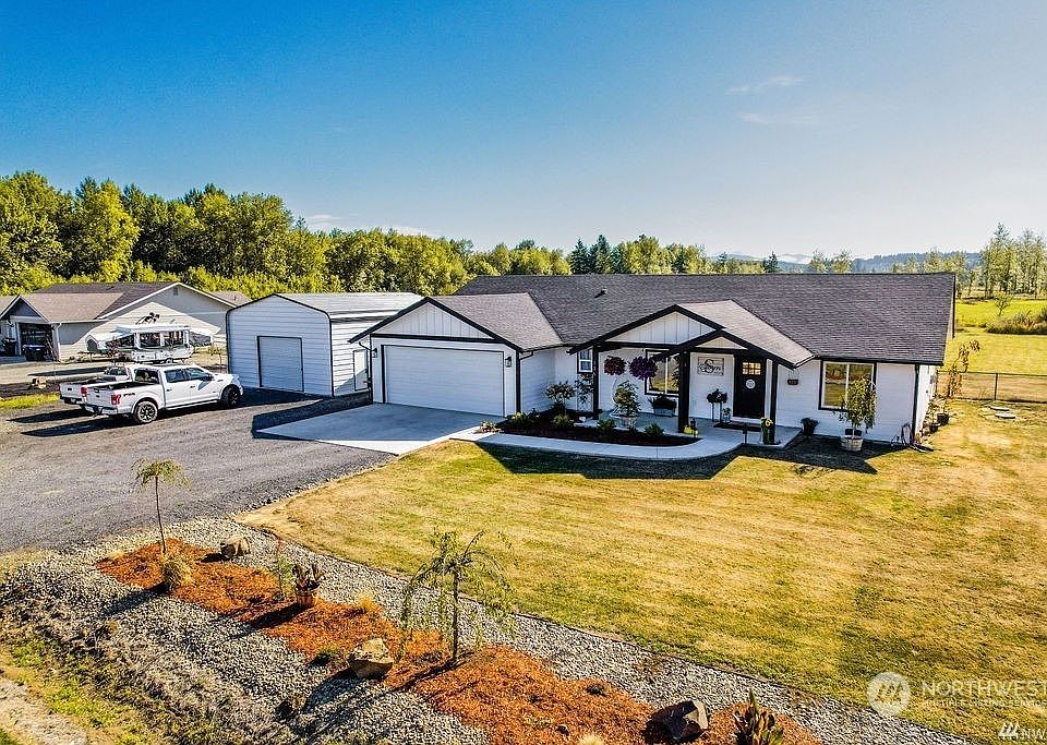 Like New Home on Private Dr Located in Picturesque Setting. Highly desirable location just outside of town near the end of a dead end road. Open floor plan with oversized master suite that is split from the other bedrooms. Large Kitchen Island with oversized slider off the living room onto a covered patio with peek-a-boo Mountain View. Vaulted Ceilings throughout the main living area help create an unmatched living space. No expense was spared when building this home!!! Recently Completed Shop helps pull this home together.