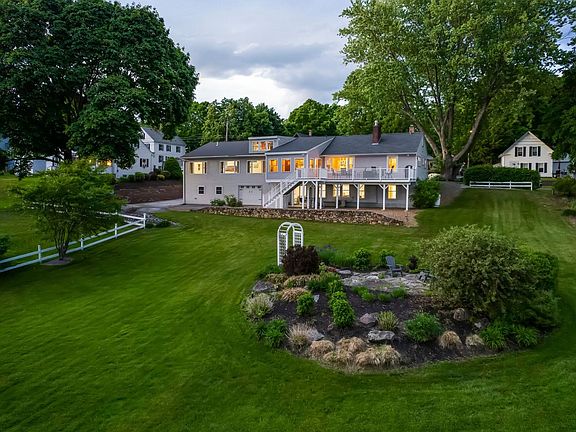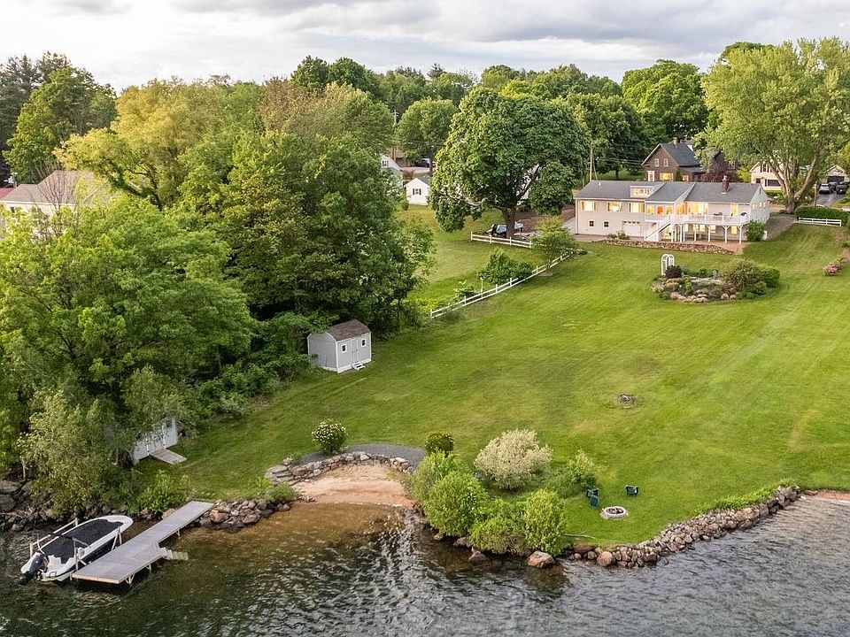 Don't miss this stunning Lake Opechee waterfront home offering breathtaking southwest sunset views along 128 feet of lake frontage. This 5-bedroom, 3-bathroom residence boasts a main living area with an updated kitchen and dining space that seamlessly flows into a cozy living room with a gas fireplace, all showcasing picturesque lake views. A newly added 4-season porch, surrounded by windows, leads to a spacious deck with direct yard access. The main floor also includes three bedrooms, a newly renovated ¾ bathroom with a tiled shower, a laundry area, and an expansive primary suite. The primary suite features direct porch access, scenic lake views, soaring ceilings with a private loft space, an oversized walk-in closet with a built-in system, and an ensuite bathroom with dual vanities and a soaking tub. The lower level provides versatile options with a spacious family room, a second kitchen, an additional bedroom, a laundry area, and a ¾ bathroom, making it an ideal in-law suite with a walkout slider door and direct garage entry access. The expansive lawn extends to your waterfront beach, private dock, and waterside shed. Additional exterior highlights include an irrigation system, established garden space, and mature trees. Just a short ½ mile from the heart of Lakeport, you'll enjoy convenient access to restaurants, daily amenities, and the restored Lakeport Opera House, all while relishing the tranquility of this quiet neighborhood.