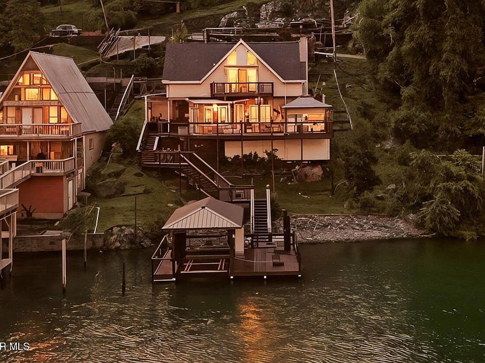 First time on the market, this cozy waterfront cabin graces the shores of beautiful Boone Lake. Offering rare panoramic views of one of the widest points of the lake with no HOA, you won't miss a minute of the adventure, beauty, and magic of East Tennessee. With high cathedral ceilings in the living room, multiple gas fireplaces, a cozy dining area overlooking the water, and spacious bathrooms, this house provides the ultimate feeling of comfort. This 2-bedroom, 2-bathroom property offers multiple vantage points to enjoy the outdoors, including a balcony, spacious deck, dock, gazebo, and a boathouse with an electric boat lift. This home also comes with a gravel parking pad with plenty of space for multiple vehicles, perfect for entertaining friends and family. This home would make a perfect private residence or could offer income-producing potential as a short or long-term rental. Call your favorite Realtor to schedule a showing today! Buyer/buyer's agent to verify all info. Information derived from seller knowledge and/or tax and public records.