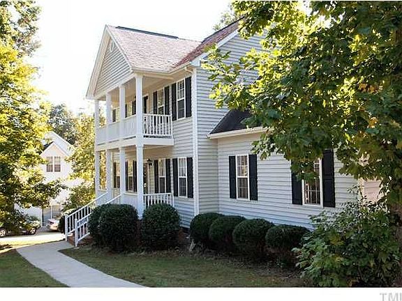 Relax in this 2 Story Front Porch Home on .69 acre golf course lot on quiet Cul-De-Sac Rd. Private entrance to upper porch from master bedroom. Versatile 3rd floor bonus room has potential as a 5 th Bedroom. Opt. membership for 3 golf courses, 2 or 3 athletic clubs, and 3 pools. 10 minutes to 264, 540, 40 only 20 minutes from Raleigh! New Carpets Installed- Priced To Sell Fast