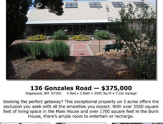Listing agent: Ron Campbell, Call 505-821-7666 for information. Seeking the perfect getaway? This exceptional property on 5 acres offers the seclusion you seek with all the amenities you expect. With over 3500 square feet of living space in the Main House and over 1700 square feet in the Bunk House, there’s ample room to entertain or recharge. Property highlights include living area with custom stone wall fireplace, cozy country kitchen with large work island and huge walk-in pantry, two luxurious master suites, large secondary bedrooms, meeting room/office/playroom, spacious sunroom, laundry room, and a 3 car garage. The bunk house offers an additional 1792 square feet of living space with 3 separate guest suites, each with a kitchenette. The immacuately manicured grounds & walking trails further enhance this remarkable property. Need additional information? Call our 24-hour-a-day home hotline at 800-522-6573 Ext. 40356! Ready to see this home? Call The Campbell Team at 505-821-7666 today!