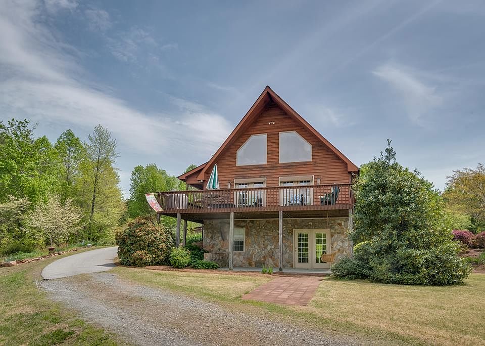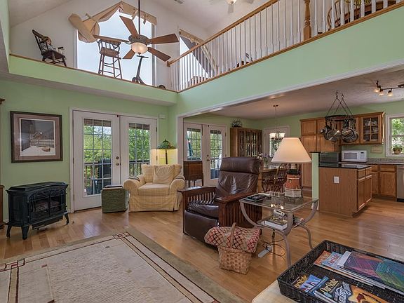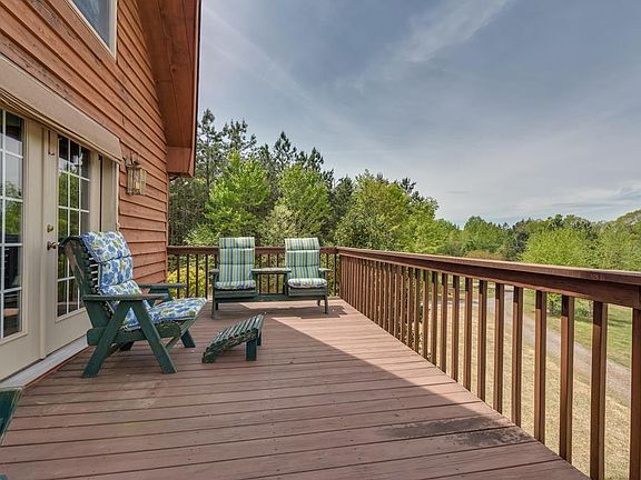 Beautiful A-frame cedar plank home on 5.36 private acres. Open living area with lots of windows and French doors to wrap deck. Main level master BR and bath opens to sun porch with hot tub. Kitchen features gas range and granite counters. Great room with Buckstove (gas) logs, wine bar. Beautiful maple floors. Full basement partially finished with full bath, wall gas heat, central air.
