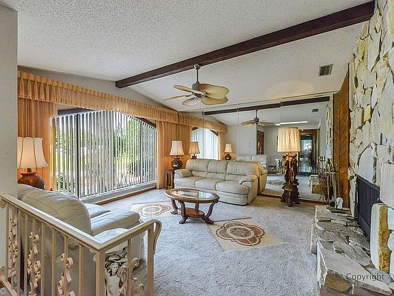 Located in a lovely neighborhood and nestled on a corner lot for a little added space. Mature landscaping surrounds the home for added curb appeal. The roof was installed in 2020, and the septic and drainfield are new as well giving you one less thing to worry about. The stone accents on the front along with wood accents really welcoming and add a little pop to the home. Inside you will find a very classic and unique floorplan. Through the double door entrance, you will come to the sunken living room. This area holds a beautiful large window. The fireplace is 2 way and can be enjoyed from the family room as well. Decorative wood beams run through this entire area. This part of the home was built for entertaining with the wet bar area just off of the family room and dining room. The slider doors run across the back wall bringing the outdoors in. New stainless-steel appliances in the kitchen, along with granite countertops, and a closet pantry. The guest bedroom has a double door entry, a deep closet and loads of space. The guest bath has dual sinks, and a tub and shower combo. The master bedroom has an elegant layout with more large sliders giving you a wonderful view of the pool area. The master bath has a large shower w/ access to the pool area and an atrium area. This is great concept when you need to go right from the pool to the shower. The back patio looks like a movie scene. The privacy wall is like something you have never seen and a very eclectic architecture. Relax and enjoy a dip in the pool along with the sounds of the elegant fountain. Low m