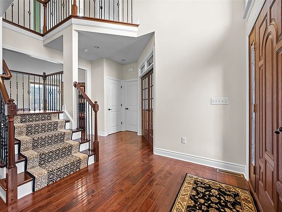 Looking for a private home with plenty of land? This custom Kaclik home set on 4+ acres in Adams Township is for you. Quality and craftsmanship are evident as soon as you enter w/ hardwood floors and elegant trim. Dining room features wainscoting and crown molding. Opposite the dining room, behind French doors is the private study w/ rich wood paneling and custom built-ins. The spacious family room, anchored by a stone corner fireplace, sits at the back of the home and flows into eat-in kitchen that features SS appliances (inc. double ovens), granite counters, an island, and deck access. The upper level has a master suite that is sure to impress with a volume ceiling and luxurious en suite with body jets in the shower and an air-jet soaking tub. Three additional bedrooms, one with a vaulted ceiling, and a hall bath complete the upstairs. The large yard is completely cleared and usable with a quaint pond. Conveniently located to Adams Twp Community park & 7 mins from Rt 228 and schools.