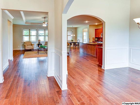 You will feel right at home in this 3 bed 2 bath open floor plan home! Amazing & spacious kitchen w/ tons of cabinets & granite counters, 2 pantries & recessed lighting. Master suite w/ bay window sitting area. Beautiful handscraped hdwd floors. LG FULLY SODDED YARD W/ IRRIGATION SYSTEM! Conveniently located btw Zierdt Rd & Wall Triana, just mins away from Redstone Arsenal, Boeing, & 565. River Landing offers resort style living w/ over $1M worth of amenities--pools,clubhouses, fitness center, tennis/basketball/volleyball courts & playground. Ask about our March Incentives-Up to $7500 in select options PLUS up to $3500 in closing costs w/ use of preferred lender!! Call site agent for details