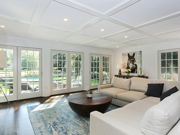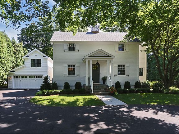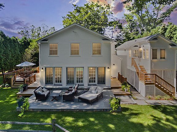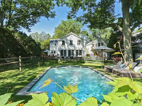 The heart of Rowayton is the setting for this gorgeous New England colonial on almost an acre of land. Completely renovated in 2018 with care, quality and exceptional taste. Sunlit and generously proportioned room scales, the kitchen, dining and greats rooms are all accessible to the porch allowing flawless indoor/outdoor entertaining. Open Chef's kitchen with sprawling slabs of heat/stain resistant quartz and granite are surrounded by custom cabinetry and exquisite millwork. Upstairs, a true master suite with fully fitted walk-in custom closet and contemporary white Carrara marble master bath with soaking tub. Find an additional en-suite bedroom, two spacious bedrooms and another full bath on the second level. Outside, enjoy a beautifully landscaped, park-like yard great for summer lawn games, blue stone terrace adjacent deck and gated in-ground pool. A separate au-pair suite with bedroom, full bath and sitting room sits conveniently above the over-sized two car garage. A quick walk to train & the town of Rowayton, a picturesque seaside setting for restaurants, shops, parks, and beaches.