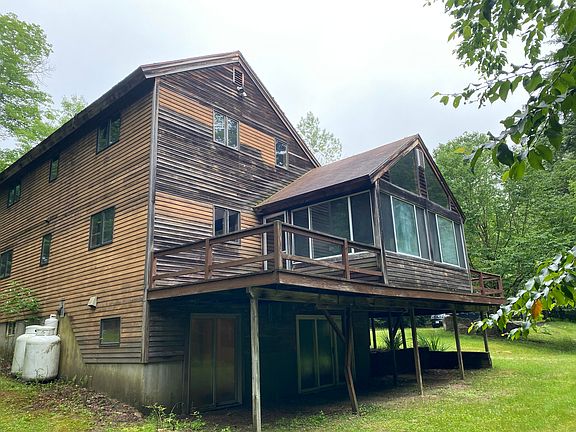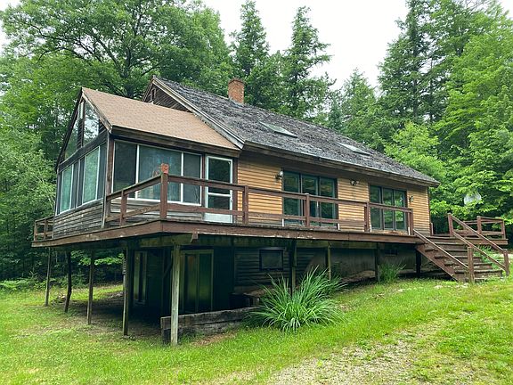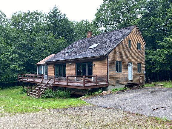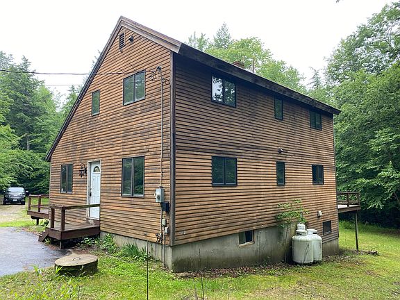 PRIVATELY SET ON OVER 10 ACRES OF LAND. Home located close to Fryeburg fairgrounds and Fryeburg Academy. Open main level floor plan with high ceilings over main living area. Bedroom and full bath on first floor and two additional bedrooms with shared 3/4 bath on second. Large front deck, enclosed porch, and rear deck. Walkout lower level partially finished into a family room and office plus workshop space.