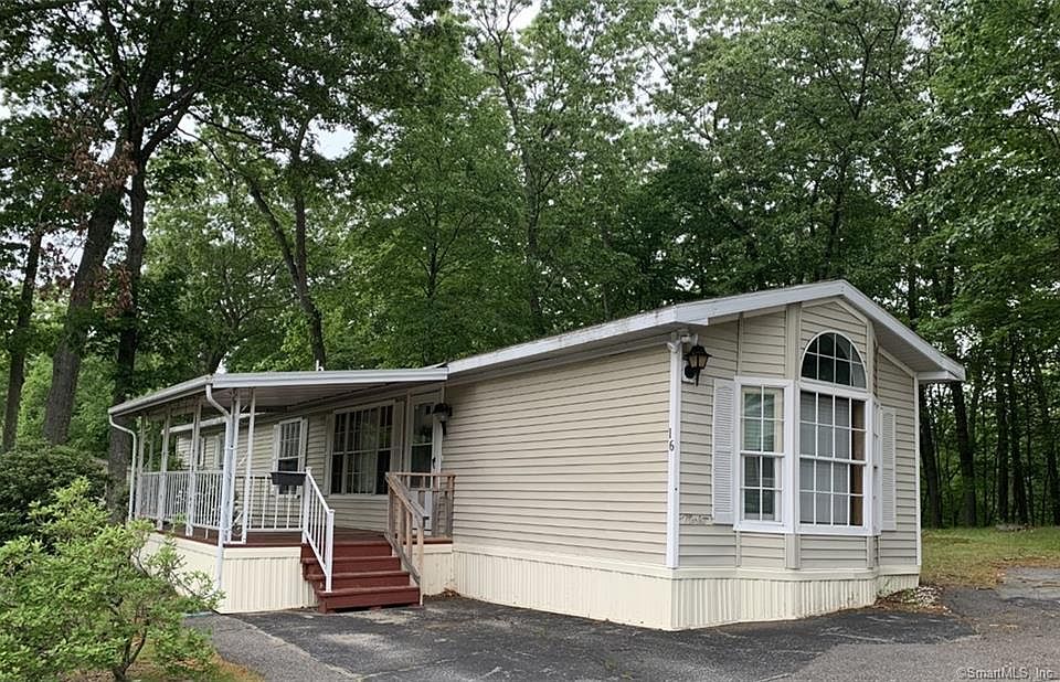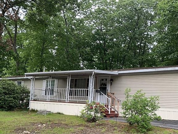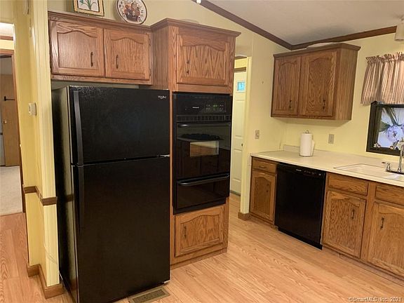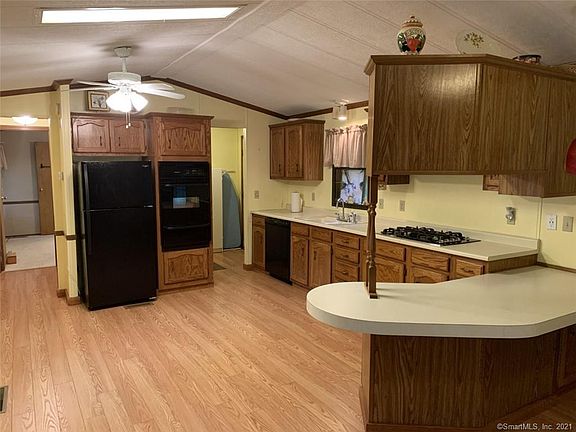 Nestled on a rear lot, this well cared for 2 bedroom 1.5 bath mobile home, enjoys greater privacy than other homes in this desired 55+ community, as your back yard opens onto a lovely wooded landscape. The 2 bdrms are at separate ends of the unit, and you will find the open floor plan makes for a spacious feel. The kitchen offers beautifully maintained appliances, eat in dining, as well as a breakfast peninsula. The master bedroom has 2 closets for storage, and french doors leading to a double sink vanity, and large master shower. The spare bedroom/office, with it's own separate 1/2 bath, offers a ton of natural light, making it feel open and airy A separate laundry room, off of the kitchen has laundry hook ups and more storage as you find yourself at your back door. Outdoor shed conveys for even more storage. Boasting central air, cathedral ceilings, large windows, and ceiling fans in every room, this house will call out for you, to call it home Imagine yourself relaxing on your covered deck, drinking your tea/coffee, listening to the birds, and living the peaceful life. Quiet and secluded, yet only minutes from nearby shopping, restaurants, Backus Hospital, Rose City Senior Ctr, Mohegan Sun and Foxwoods Casino. Purchase is subject to park approval. Lot rental is $453/mo. and includes water, sewer, trash pickup, road maintenance and snow removal of roads only. One inside cat is allowed. Park application required.
