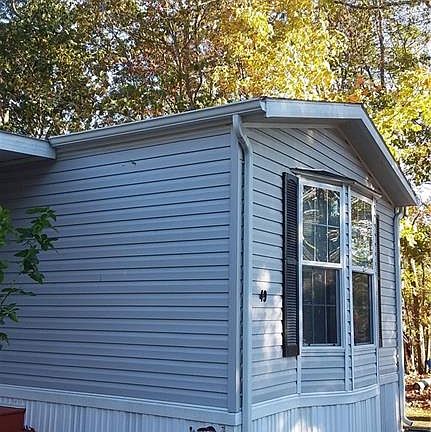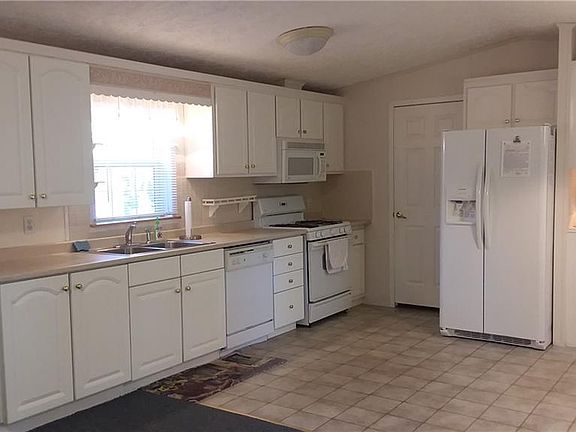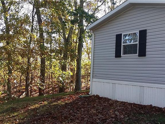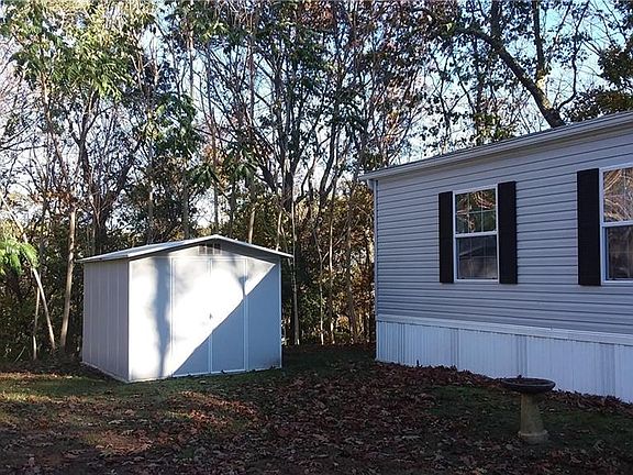 This home sits at the top of the hill and has a neighbor only on one side. On the other side yard, you will enjoy trees, nature and quiet. One level living, with all that you need: dining room, large kitchen, enclosed porch, laundry area and 2 bedrooms each with their own full bath. A shed provides storage. This is a 55+ community that does not allow dogs (of any kind). Purchase is subject to park approval.