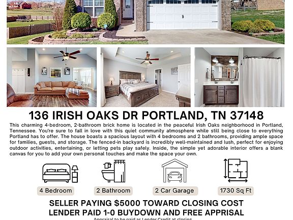 Huge Buyer Incentives for this beautiful home!! Seller To Pay $5000 Towards Closing Costs! AND get a free Appraisal AND 1-0 Buy-Down Financing with Rick Jackson Platinum One Lending, LLC. This lovely home situated in a quiet neighborhood that you're sure to fall in love with! With 4 bedrooms and 2 bathrooms there's plenty of space for guests and storage. Come enjoy the fenced-in and incredibly maintained lush yard that boasts the space for so many fun activities. Simple yet adorable interior making it very easy to add your homey touches.