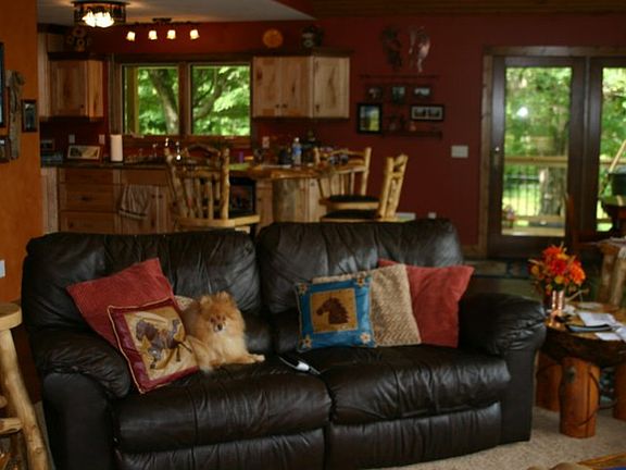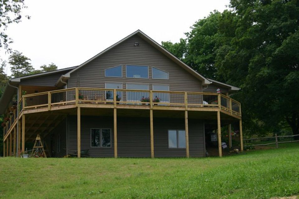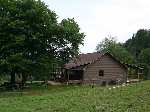 Custom built mountain home. Privacy on 5 acres, spring fed stocked pond and branch. Very well built with 2x6 exterior walls. Open floor plan with vaulted ceiling with stacked stone fireplace. 1,700 sq ft of decks and porches. Mature trees on a old homestead lot. please note the third bedroom is currently being used as a storage/work area. It will be completed out and closet built with finishing that matches the rest of the home Buyer/Buyer Agent to verify all information.