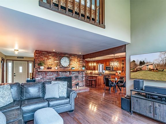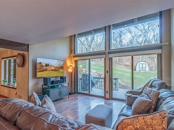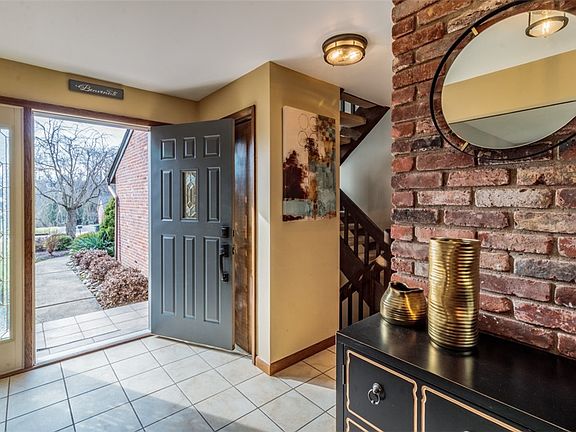 Custom built contemporary home in the heart of Peters Township offers an amazing floor plan sitting on 1/2 acre lot with mature landscaping. Tons of natural light stream in throughout the beautiful windows. The main level is an entertainer's dream with a gourmet eat-in kitchen including custom cabinetry, granite countertops, SS appliances and gleaming hardwoods. The vaulted ceiling living room includes a large exposed brick gas fireplace and fabulous view of the private lot and patio just waiting for your summer evenings. There is a large dining room and full bath to complete the first floor. The second floor includes vaulted ceilings with 4 bedrooms and 2 full baths. Two bedrooms each offer a private balcony overlooking the back yard. Lower level includes a large game room for even more space to entertain along with plenty of storage and a laundry room. Oversized two car garage, wrought iron fenced in back yard and tons of unique charm complete this beauty. You next home awaits!