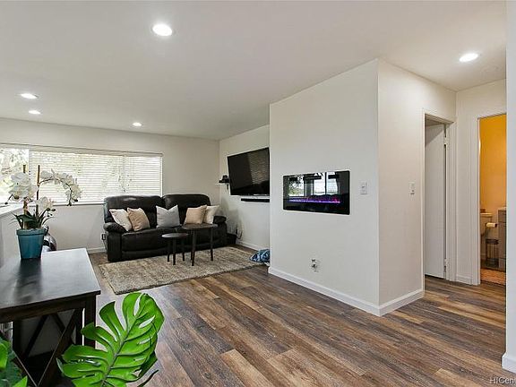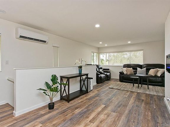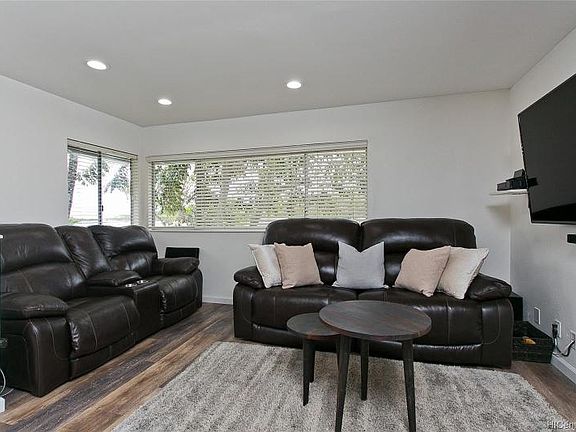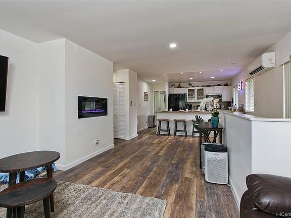 Rarely available home nestled in the highly desired Kailua Bluffs neighborhood. This 3 bedroom, 2 bath property has a welcoming open floor plan. Split AC in the living room. Beautifully remolded kitchen with stainless-steel appliances and a built-in wine fridge. Freshly painted interior, new luxury vinyl flooring and bathroom vanity cabinet. The Master Bedroom has a walk in closet and back lanai that looks out to lush greenery. There is also a spacious 2 car garage with additional driveway parking. As an added BONUS, all 3 mounted TVs as well as the sleek electric fireplace will stay with the home!!