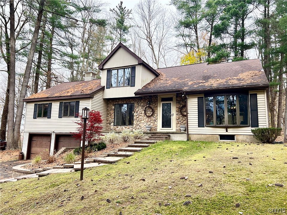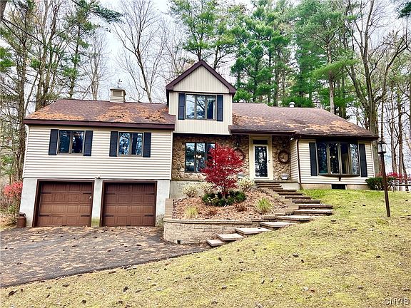 The time is now to view your potential next home. This 4-bed, 2.5-bath contemporary sits on a beautifully maintained 5.37 acres. With one bedroom and a half-bath on the main floor and three bedrooms and two baths on the second floor, this home is set up with plenty of space and convenience. The newly remodeled kitchen is large and bright, with a dining-L granite countertop, breakfast area, and formal dining room. The main floor living spaces include a breath-taking formal living room with a vaulted ceiling and gas fireplace, while the family room is a warm and welcoming room for casual gatherings and relaxing. Some new features to this home include: New entrance walk and retaining wall, Resurfaced driveway, Reinforced front porch wall, New hot water tank, Remodeled owners bathroom, Remodeled half-bath on the main floor, Added 3/4-inch hardwood floors in living room, and Built 12x16 cabin with kitchenette, bunk beds and sitting area, in the woods. Enjoy relaxing in your hot tub located on the screened-in porch, leading to the backyard. Outside there are several trails leading to multiple gathering places on the property.