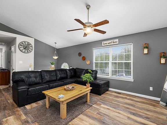 Come check out this recently renovated 3 bed, 3 bath house just a few minutes away from the Gravois Bluffs in the popular Winter Valley Subdivision. On the top level, you will find an open floor plan with vaulted ceilings to accompany the living and dining area. Make your way to the kitchen to find beautiful white granite countertops with ample cabinet and pantry space. Upstairs there are three bedrooms with a fresh paint job and new flooring installed. Master bedroom with its own separate bathroom and walk in shower. There is another full bathroom down the hall. Down the stairs, you will find a recently redone basement with exposed ceiling giving a modern look, LVP flooring, and another full bathroom with a walk in shower. Two car attached garage with ample space and shelving units built in to help with storage needs. The backyard will be amazing for the upcoming summer nights with a spacious patio for quiet nights and barbecuing.
