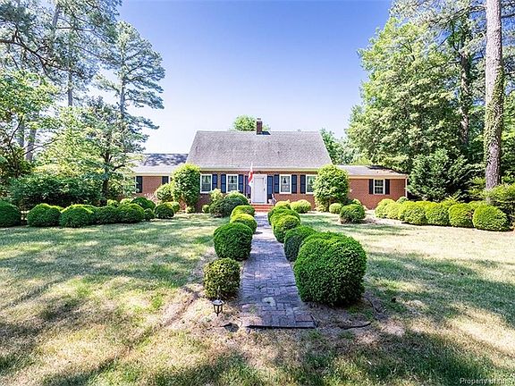 Location! Location! Location! This home is just a minute from the Yorktown Monument! Own this brick beauty, and you'll be living in the middle of history. With access to the York River, you have over half an acre in a prime location. And don't forget the in-law suite with its own kitchen, full bath and separate entrance! Open the front door to wood floors and a spacious family room. It's the heart of the home, with the wood stove insert. Notice the detail of the decorative window trim. Off the main room, you will find a first-floor primary bedroom, added in 2012 by Hipple. Pick a book off the built-in bookcase in the library and take it to the quiet of the inviting sunroom, or enjoy afternoon happy hour with friends under the pergola. There's plenty of room for guests. Park in your oversized detached garage. Updates include a roof approximately 5 years young, and Leaf Guard gutters. Rest assured that you will always have power thanks to the generator. Plenty of storage or a great place for tinkering in the spacious basement, complete with heat and air!