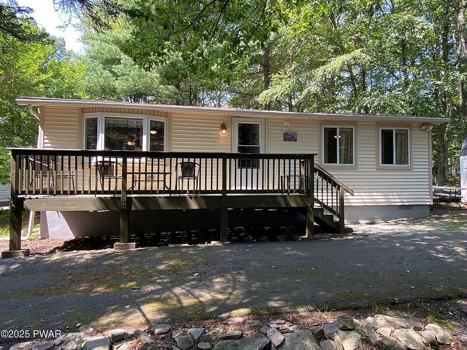 LOVELY RANCH in Marcel Lake Estates! This beautifully upgraded and maintained 2 bedroom 1 bath home is perfect for anyone just starting out, downsizing or looking for a Pocono getaway! The open floor plan makes the home feel much larger than what it measures. A galley kitchen with newer appliances makes meal prep a cinch. Notice the up to date flooring, upgraded bathroom and circular driveway when you take your tour! Sit on the front deck and enjoy the year round view of Marcel Lake through the trees.