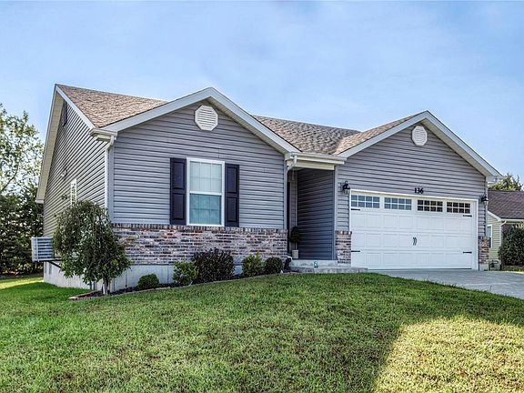 Welcome to 136 Lake Tucci Lane! Here's the ranch you've been waiting for--Five Years New--3BR/2BA/2-Car Garage/Main Floor Laundry/Composite Deck/Backs to trees! Great curb appeal, with tidy landscaping, pretty leaded glass front door, brick & vinyl facade, plus garage door w/windows. Foyer opens to secondary bedrooms, full hall bath w/adult-height vanity, and coat closet/linen closet. Master has spacious walk-in closet; bath features sep. jetted tub & shower, plus adult-height vanity. Vaulted Great Room with ceiling fan. WAIT UNTIL YOU SEE THIS KITCHEN! Black granite tops white cabinetry. Huge island/breakfast bar. Glass tile backsplash and 42" wall cabinets, plus pantry. Great light fixtures as well. Main floor laundry opens to garage. Slider off breakfast area opens to large composite deck with railings and steps to yard. Outstanding upgrade! Yard backs to trees. Basement features an egress window and bath rough-in. Come enjoy the growing small town of Wright City! Additional Rooms: Mud Room